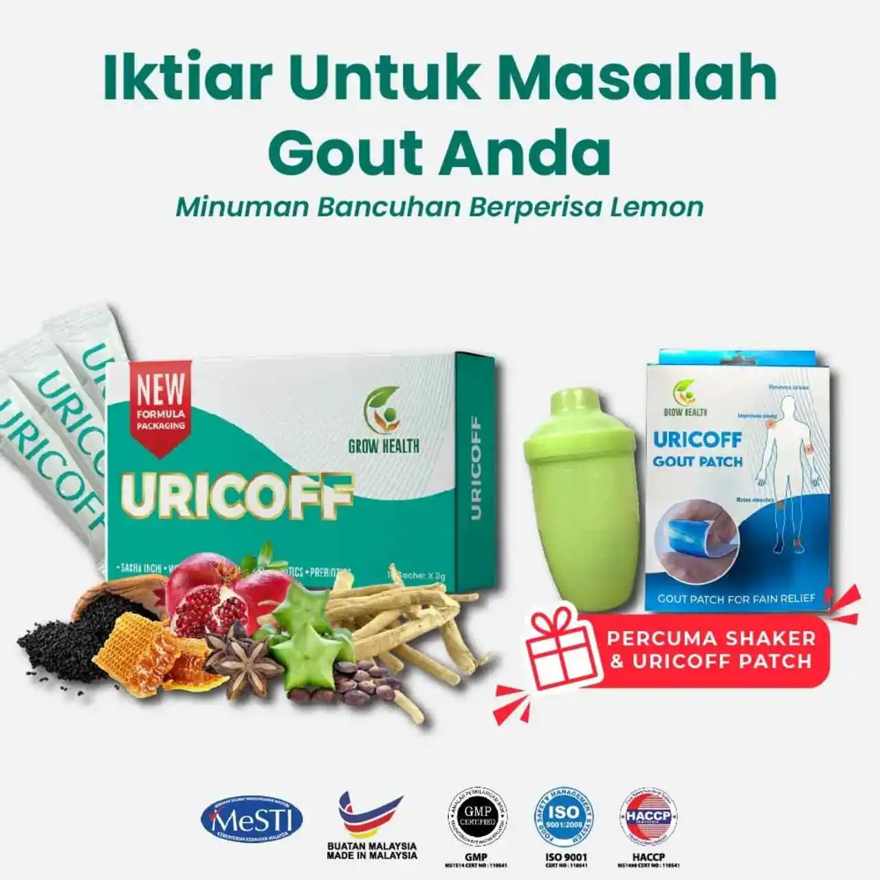 Tidak! Ubat Gout URICOFF mempunyai Sijil Ujian makmal (lab test)
