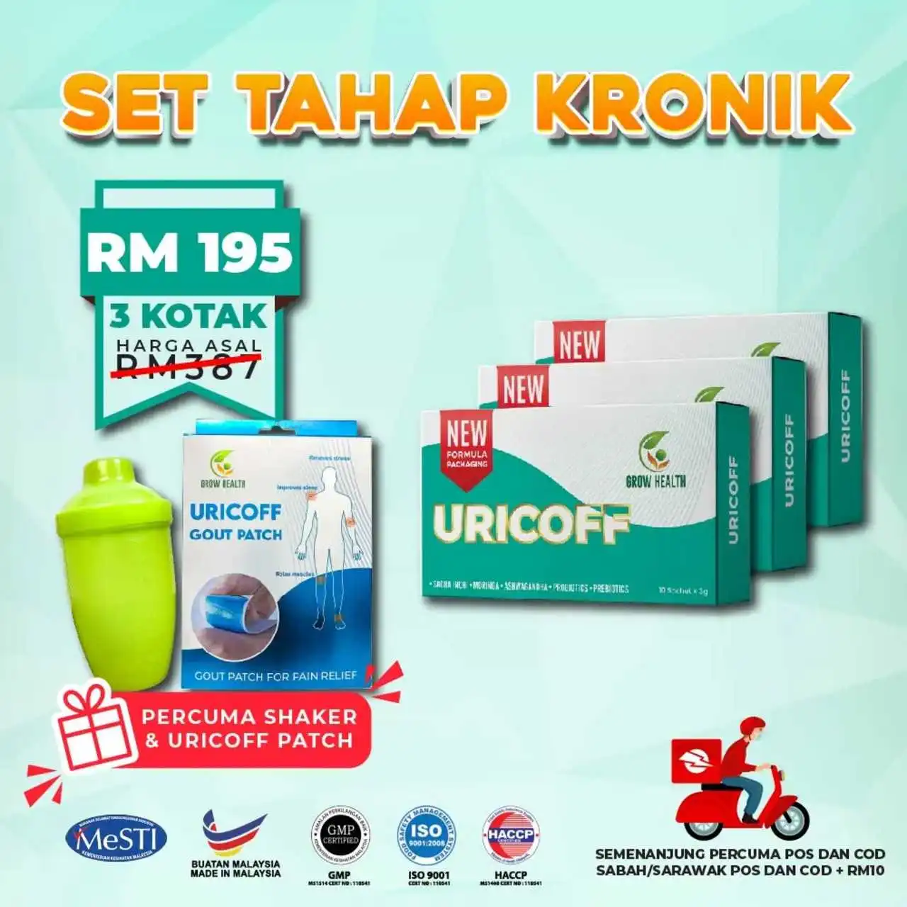 Dah repeat kali ke-3. Ok sangat membantu suami sy yg kena penyakit gout terima kasih penghantaran ninja memang mantap sangat pantas